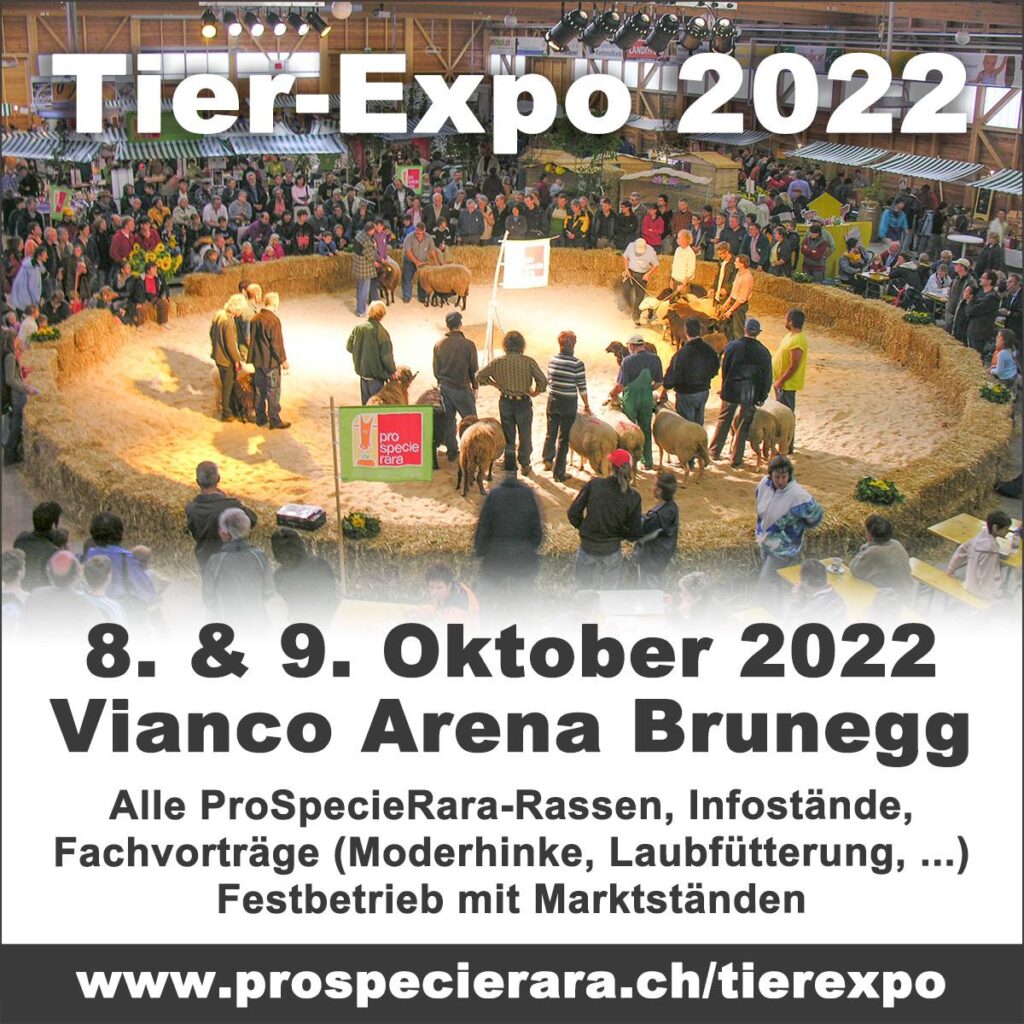 Die ProSpecieRara Tierexpo findet am 8. & 9. Oktober 2022, in der Vianco Arena Brunegg statt. Alle ProSpecieRara-Rassen werden dort präsentiert und es laden Infostände von den Vereinen, interessante Fachvorträge, vielfältige Marktangebot und einen Festbetrieb, zum Verweilen ein.Unsere schönen Bündner Oberländer Schafe werden mit einer Gruppe in der Haupthalle und mit weiteren Gruppen im Aussenbereich […]
